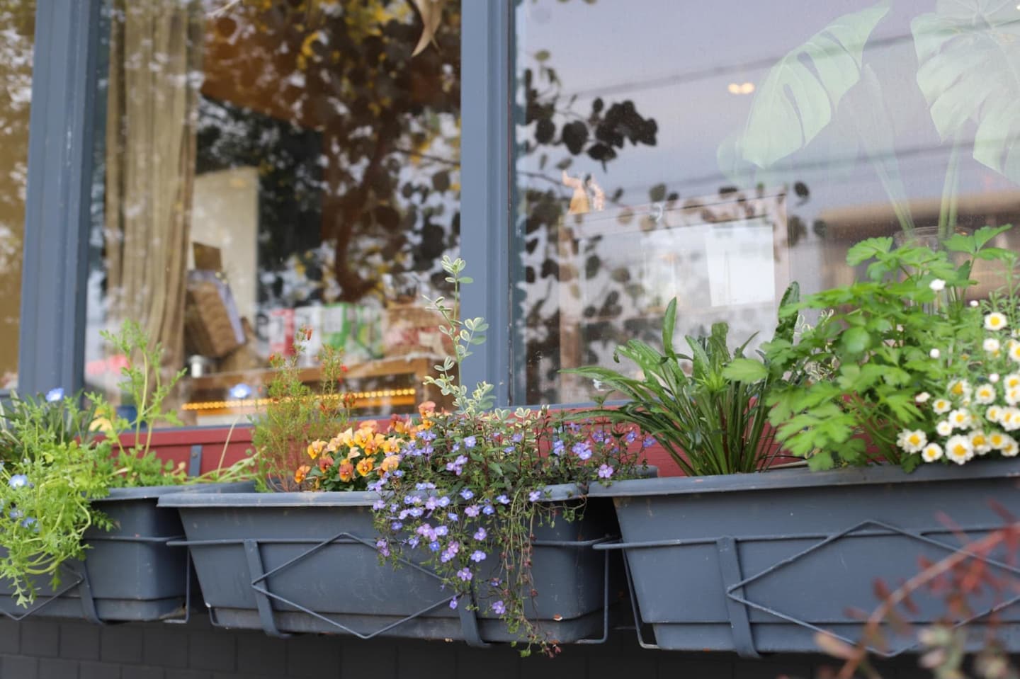 また、渡仏されていたお姉様に同行してフランスにいくことがあり、フランスの街や食べ物が気に入ったことも、パン屋に転身するきっかけのひとつになりました。その影響もあり、パン リゴレでは、アイアン製の看板や、ハーブや花々に囲まれた花壇や出窓など、フランス郊外のお店のような雰囲気を楽しむことができます。