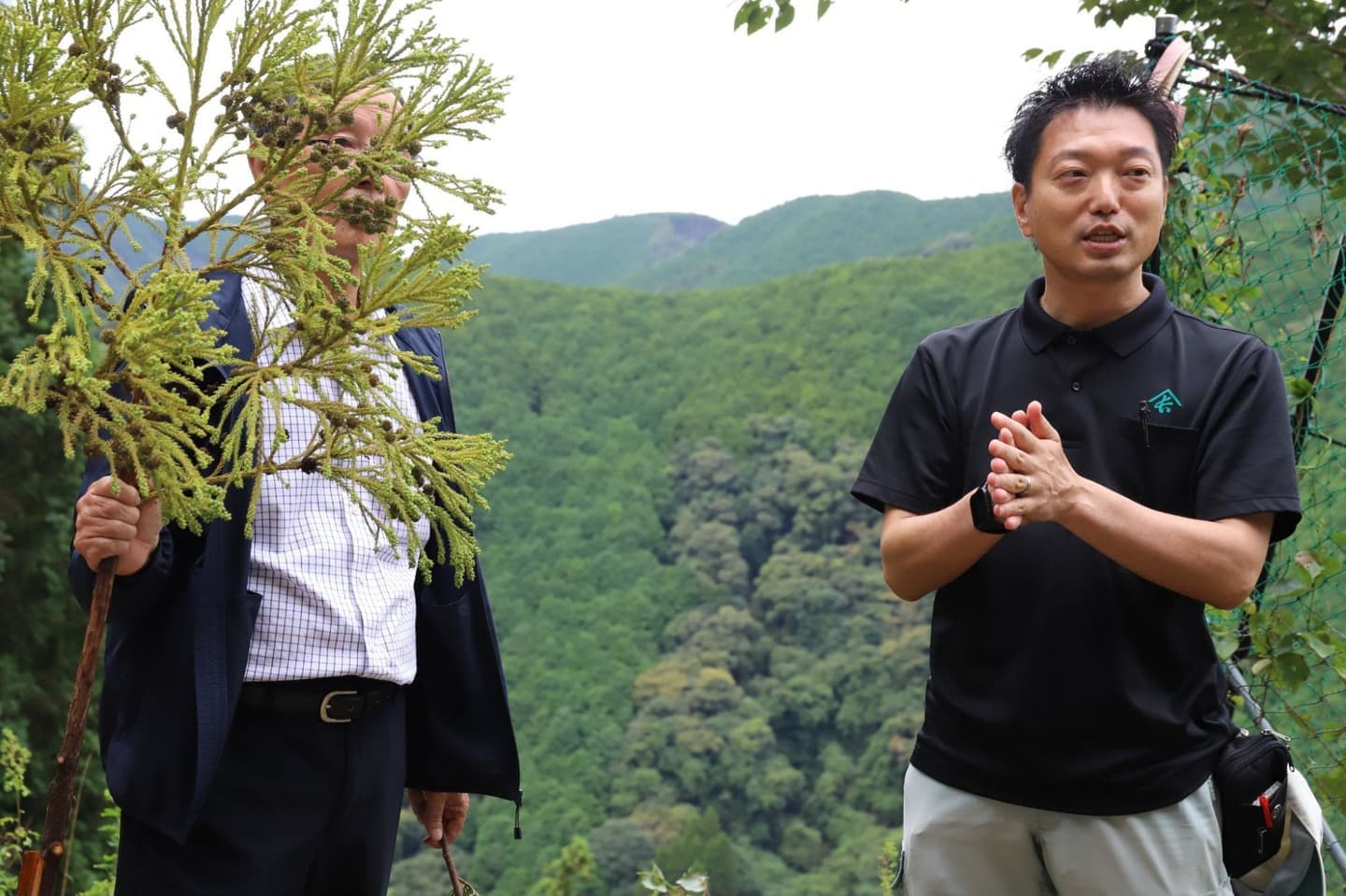 「杉と桧の違い、わかりますか?葉や樹皮からも違いがわかりますし、生える場所も異なります。杉は寒さに強く、雪の重みに耐性が強いので、日本海側の針葉樹はほぼ杉です。今回案内した山は、桧を7割、杉を3割育てています。桧は水を嫌い、杉は水を好むので、それぞれ適した場所に植えており、共存はしていません」
