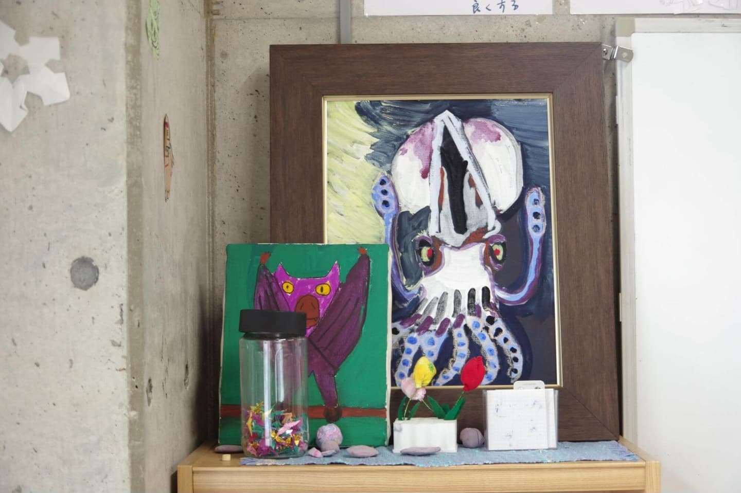 障がいのある子どもたちの所属する「あとりえクレッシェンド」で描いた作品は、アトリエ内に飾られるだけでなく、展示会を開催したり、企業へ貸し出しをしたりもする。
