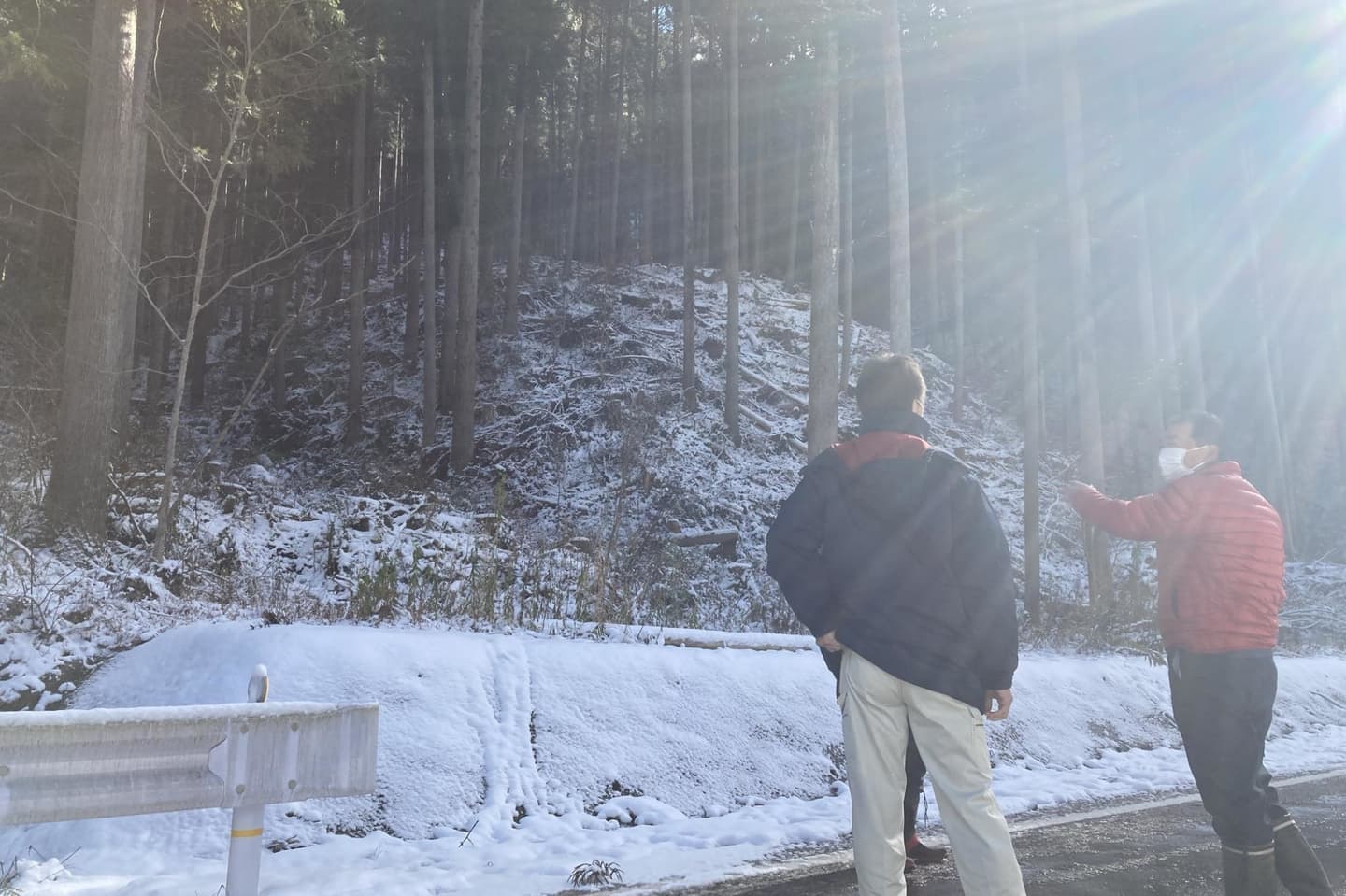2020年12月―現地を視察しながら、山主さんに話を伺う。