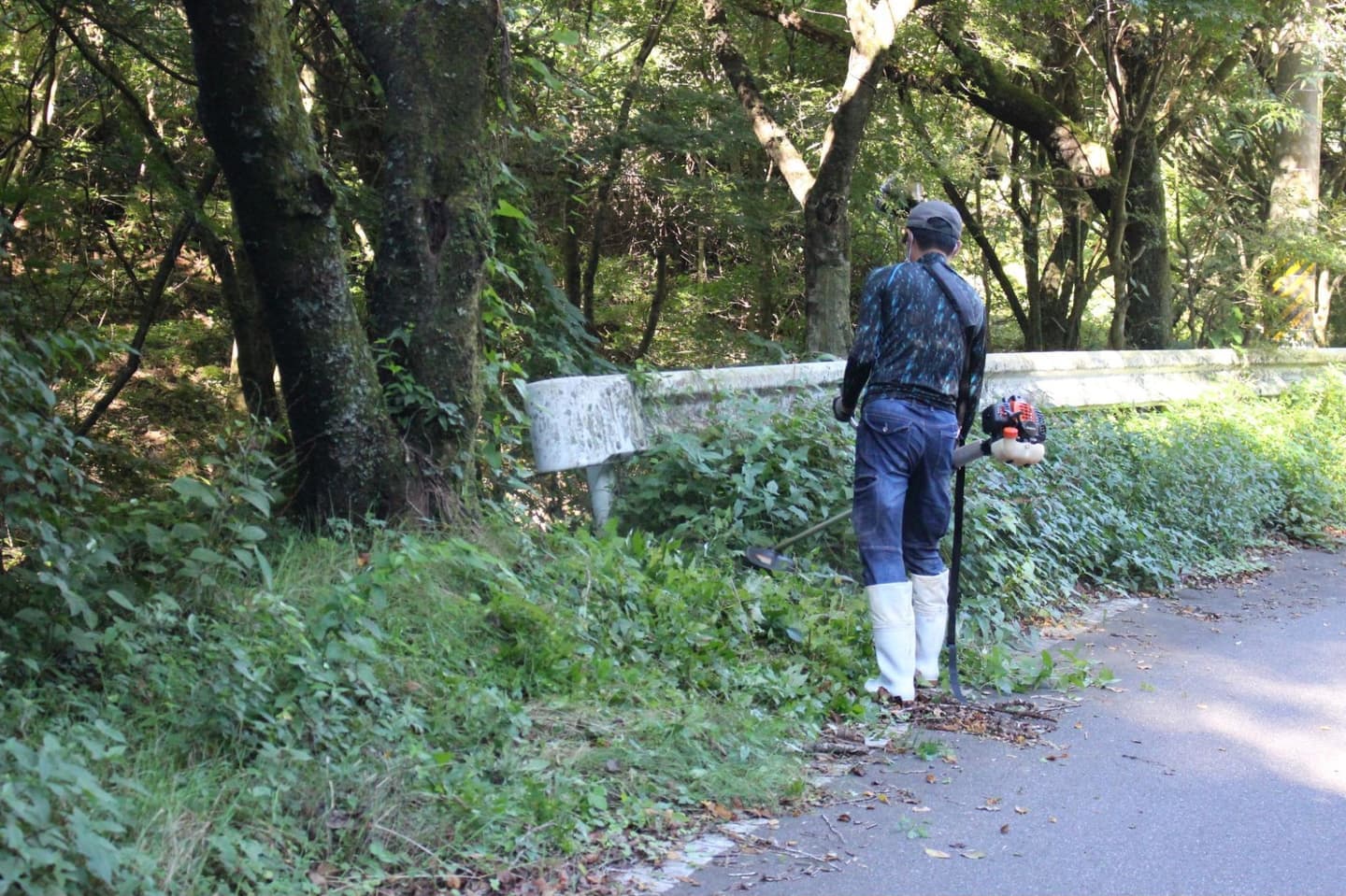 湿地廻りの公道付近も草刈りをしてすっきり。定期的な手入れが、安心して過ごせる観光地の維持に繋がる。