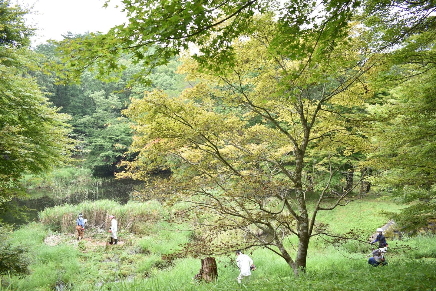 もみじまつり来場者さんの駐車場となるスペースを整備。もみじだけでなく、多様性のある植生が楽しめるのもタカドヤ湿地が人気である理由のひとつ。安全に歩けるように通路も整備しました。