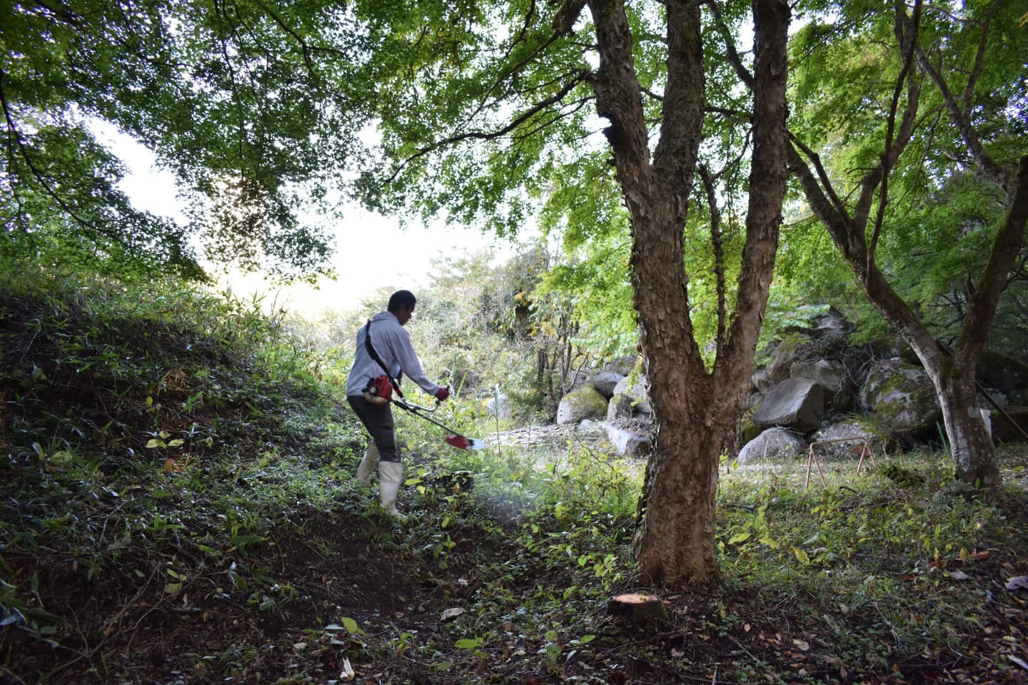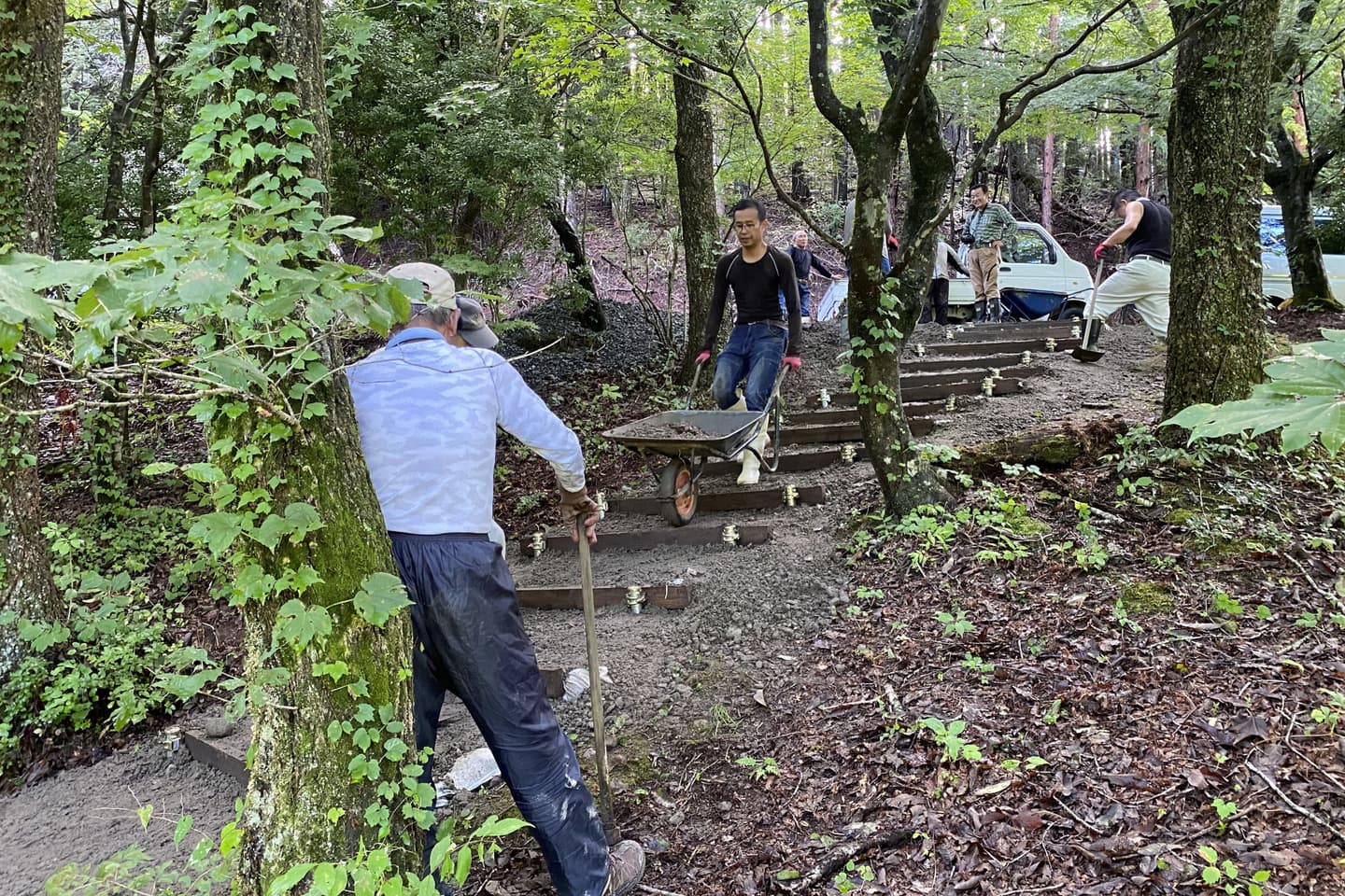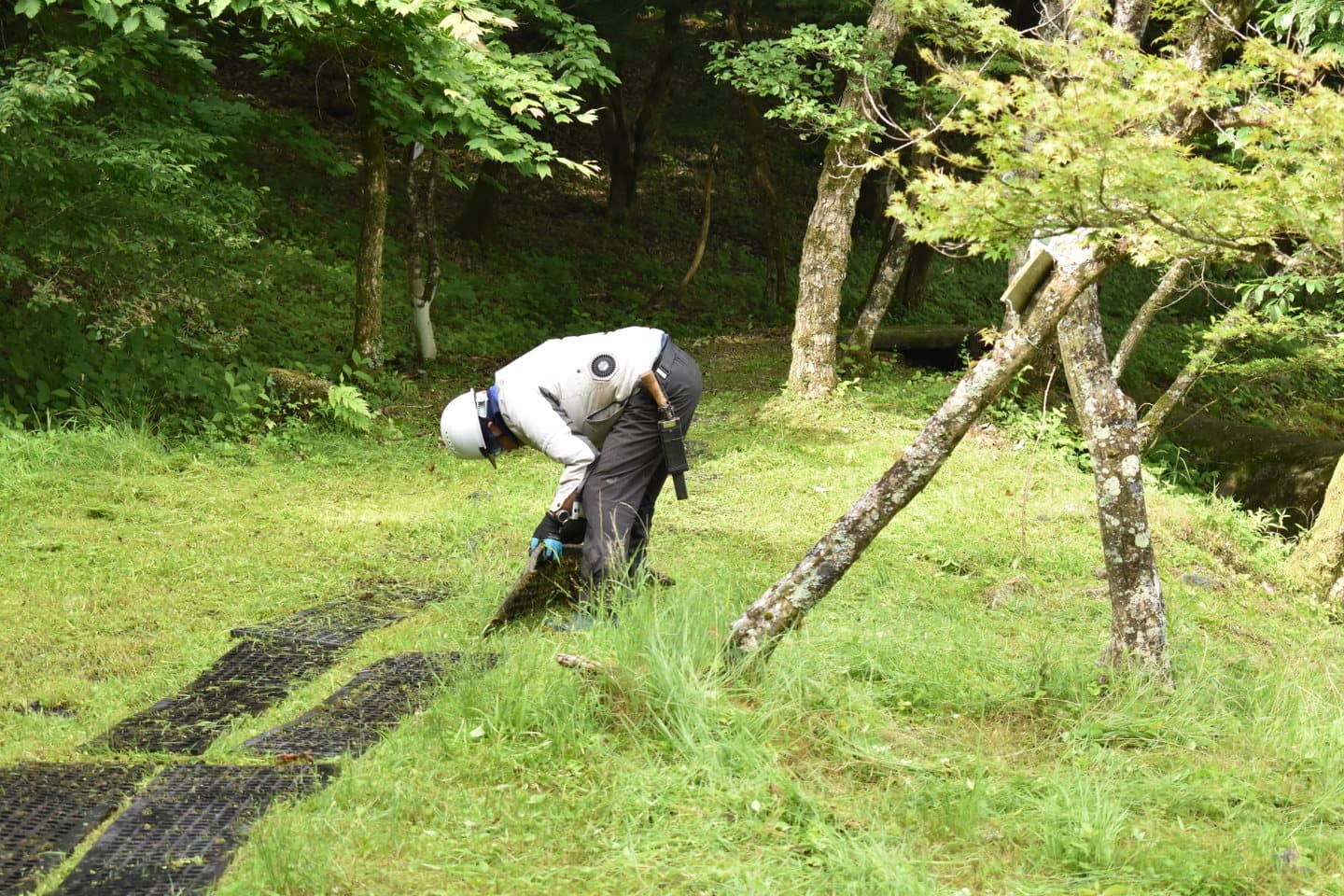草刈りだけでなく、訪れたかたが歩きやすいように歩道を整備するのも欠かせないことです。