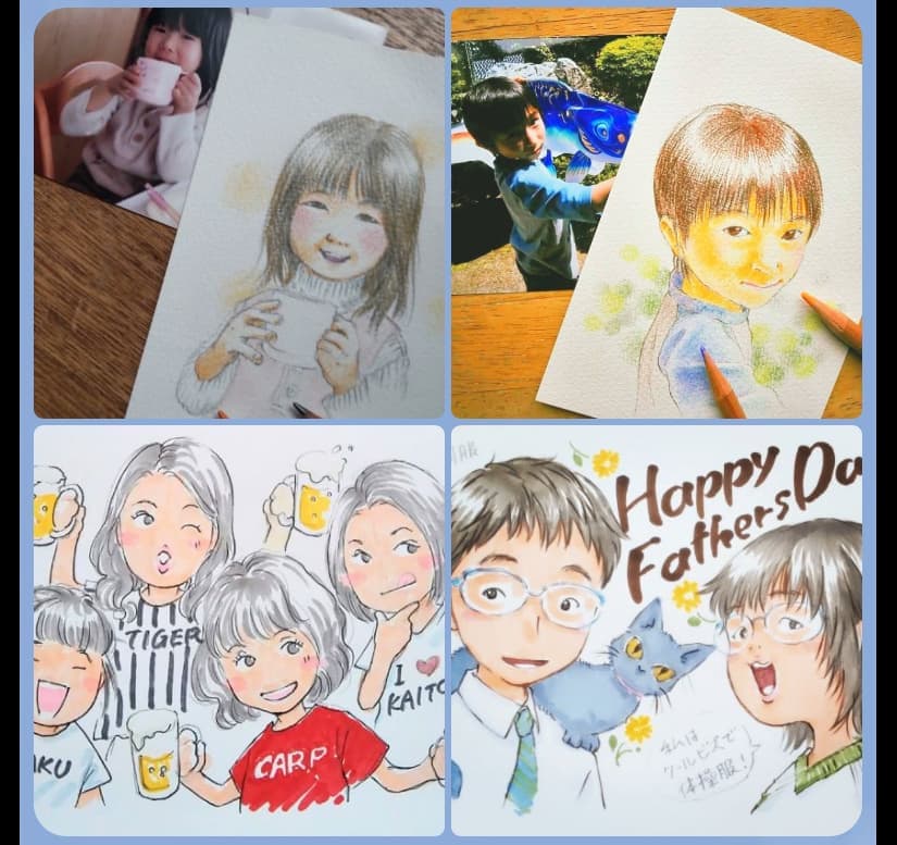 チャレンジしたい方は一緒にご自分の似顔絵を描いていただいても大丈夫です