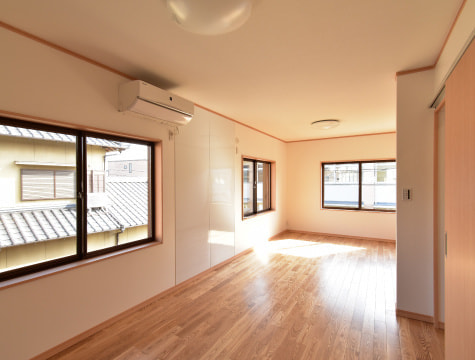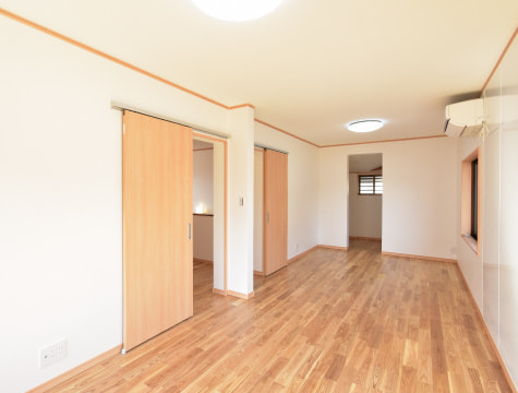 納戸状態になっていた夫婦室は畳敷きからフローリングに改修し、将来寝室として使えるようにしました。北面にあった押入れを撤去し、広々使えるウォークインクローゼットに改修しました。
