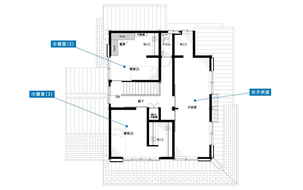 子供室は北面にあった押入を撤去し、広く活用できる空間へ改修しました。北側にあった使われていない洗面室を撤去することで、子供室のウォークインクローゼットとして活用出来る空間に変更しました。