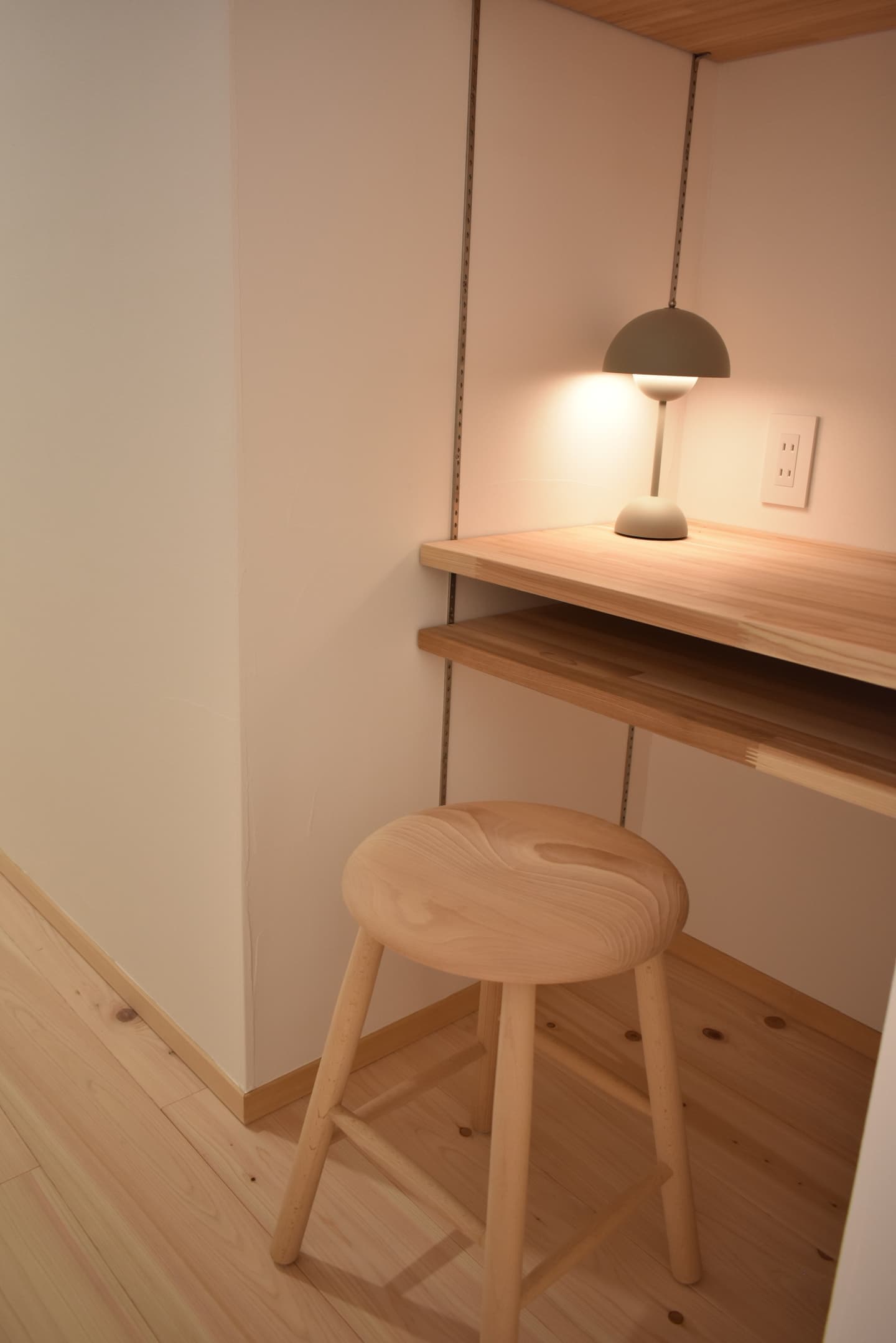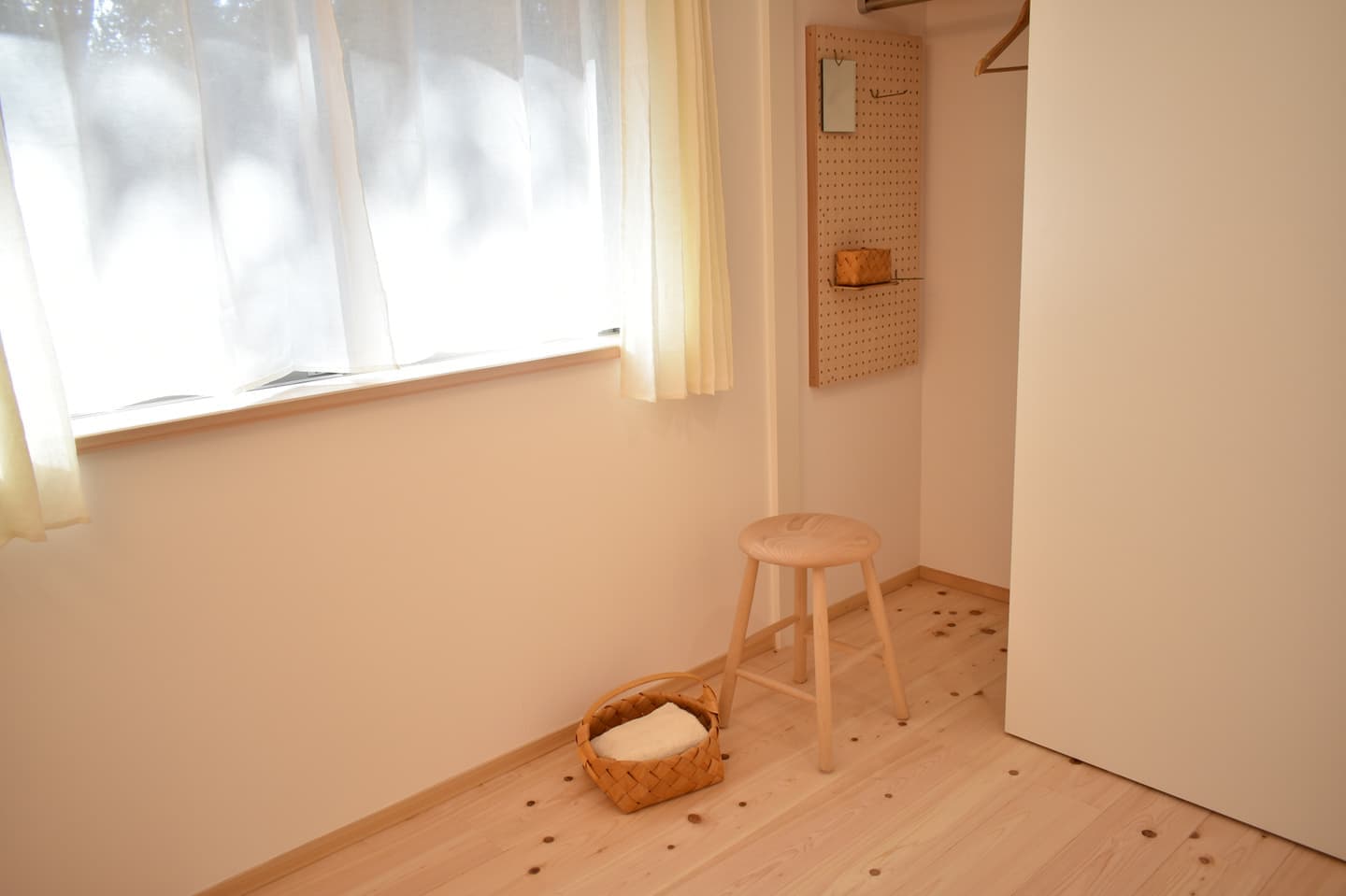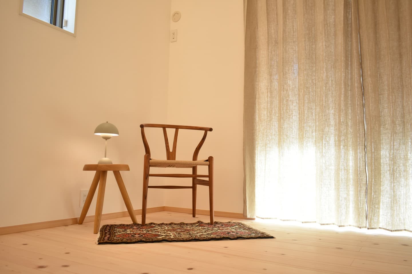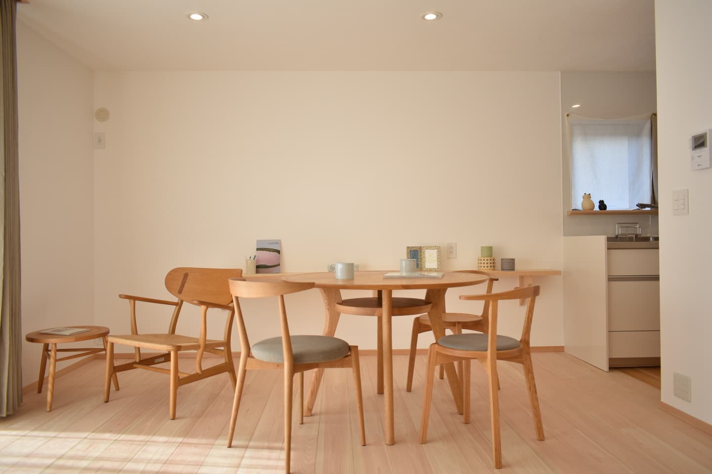 何気ない日常を穏やかに過ごせるように、安心安全な自然素材を選びました。室内は木と漆喰、外壁の塗り壁はアースカラーで落ち着いた雰囲気に。無駄なスペースがなく、コンパクトな間取りであることやミニマルな暮らしの中に、天井を低めに抑えたうえで大きな窓にすることで開放感のある空間にするなど、Sさんの夢を実現したお住まいに仕上がりました。