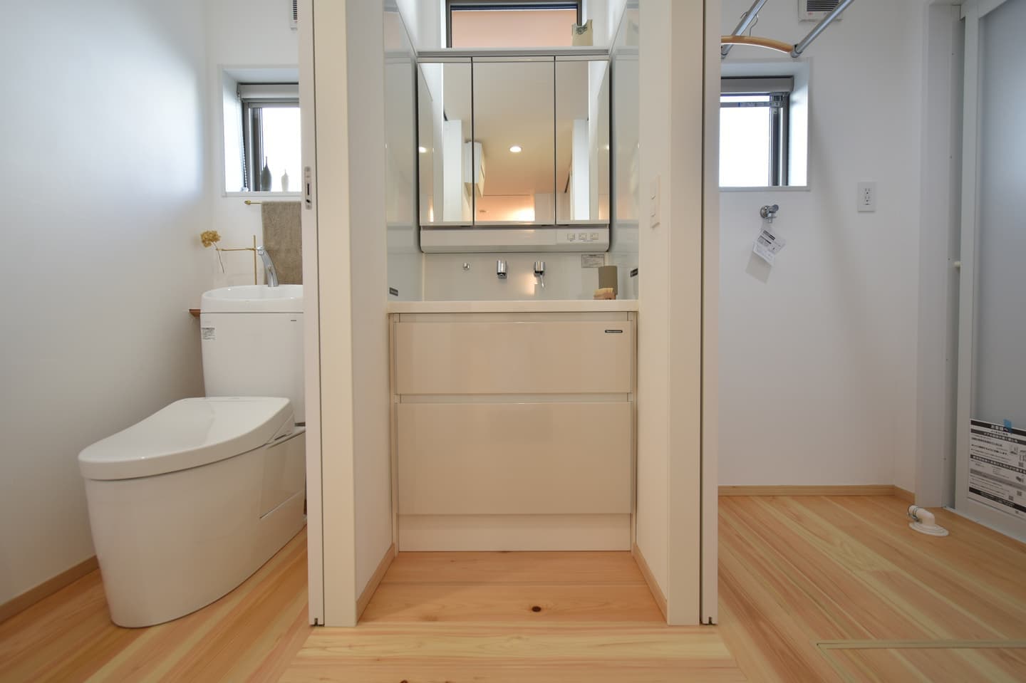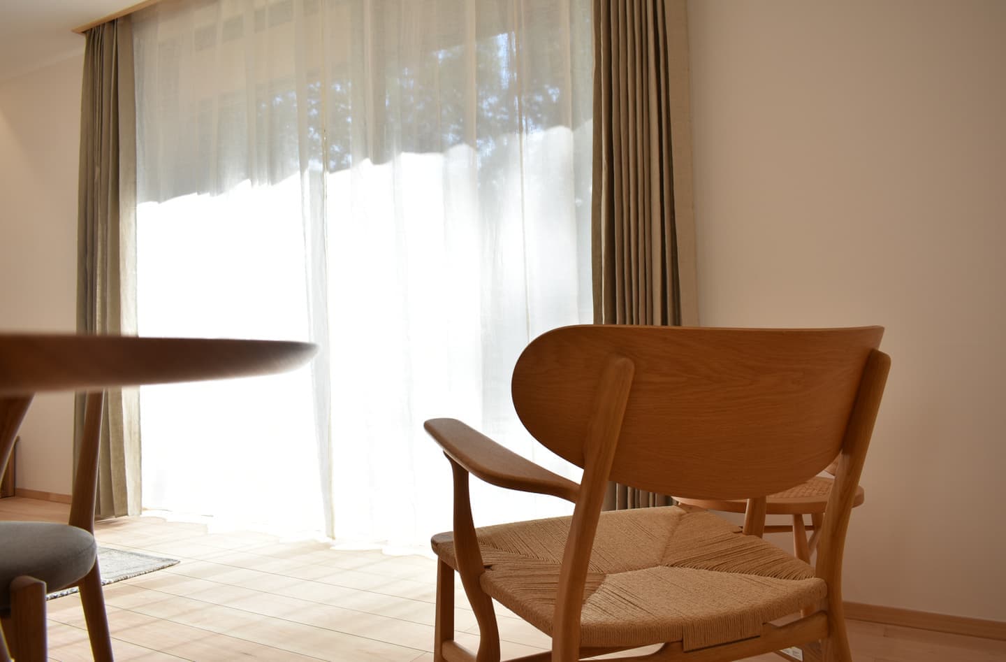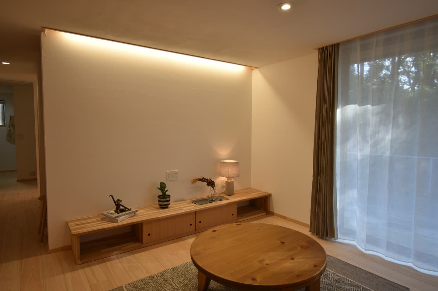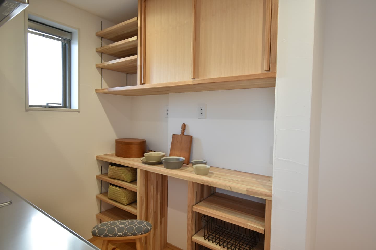 何気ない日常を穏やかに過ごせるように、安心安全な自然素材を選びました。室内は木と漆喰、外壁の塗り壁はアースカラーで落ち着いた雰囲気に。無駄なスペースがなく、コンパクトな間取りであることやミニマルな暮らしの中に、天井を低めに抑えたうえで大きな窓にすることで開放感のある空間にするなど、Sさんの夢を実現したお住まいに仕上がりました。