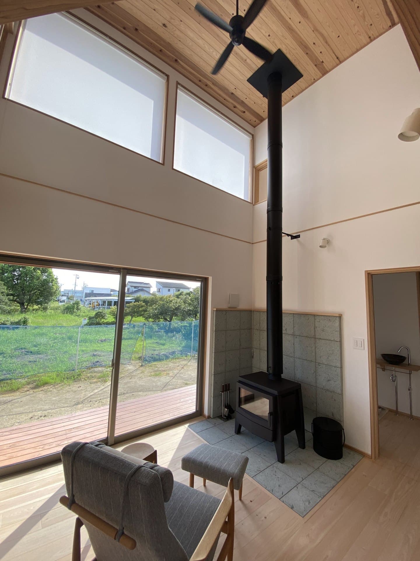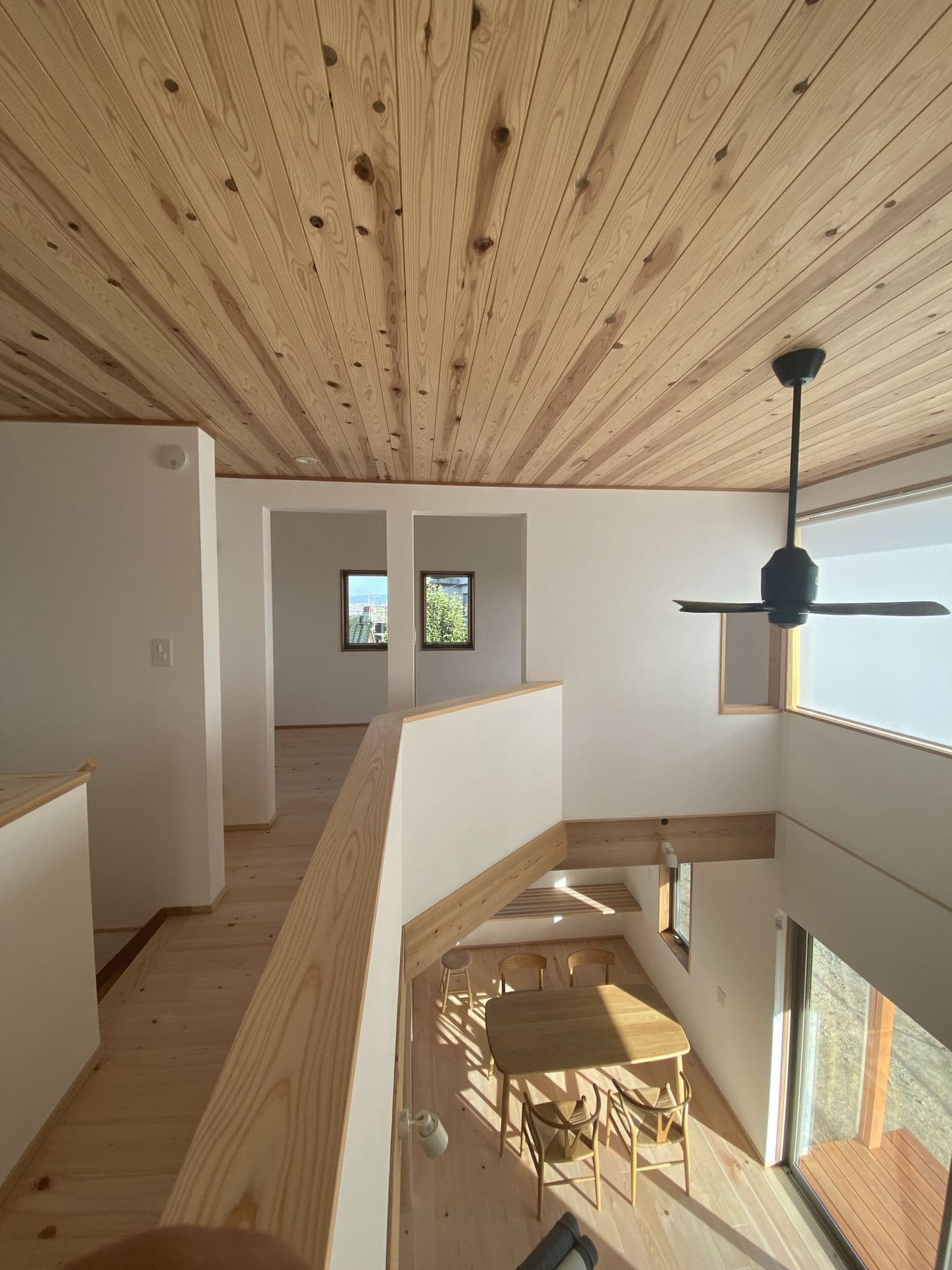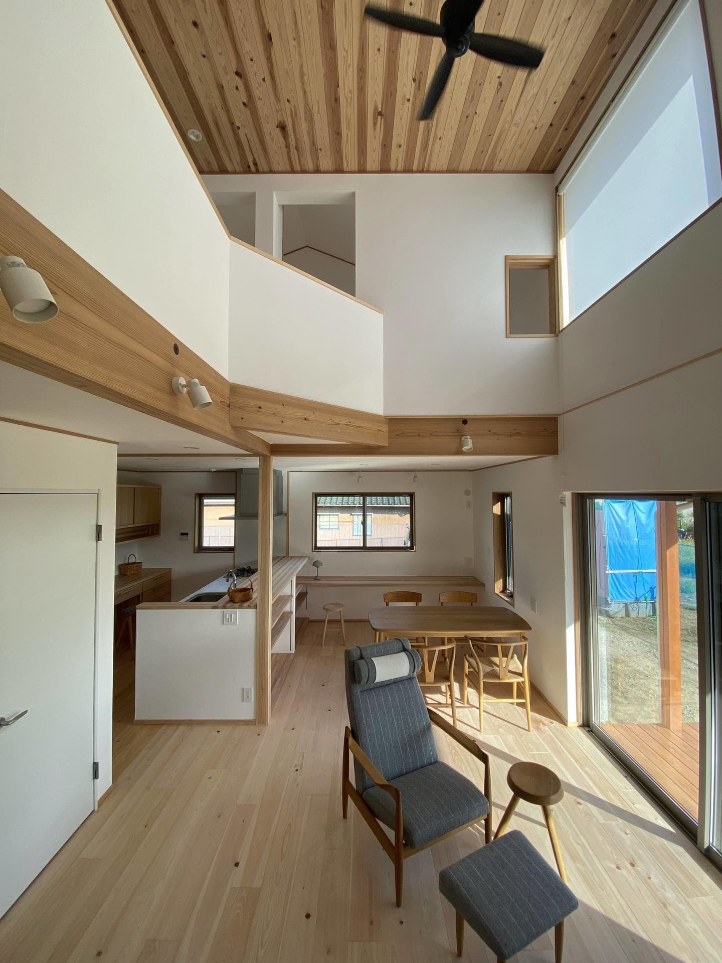 吹抜けと大きな窓などは、ミニマルな暮らしの中にも開放感のある空間へ。