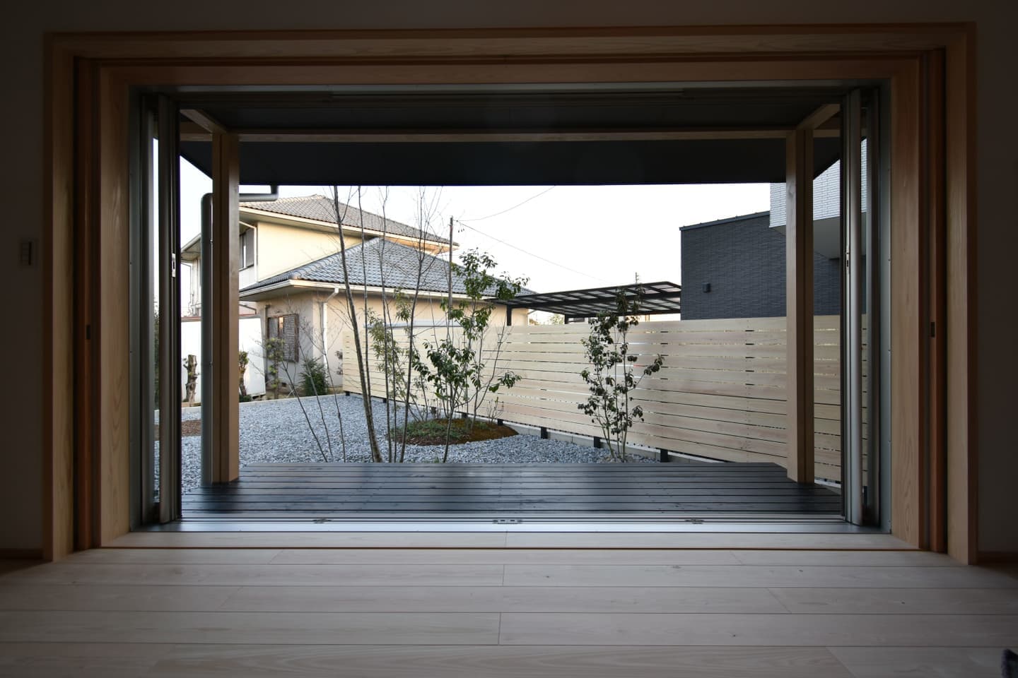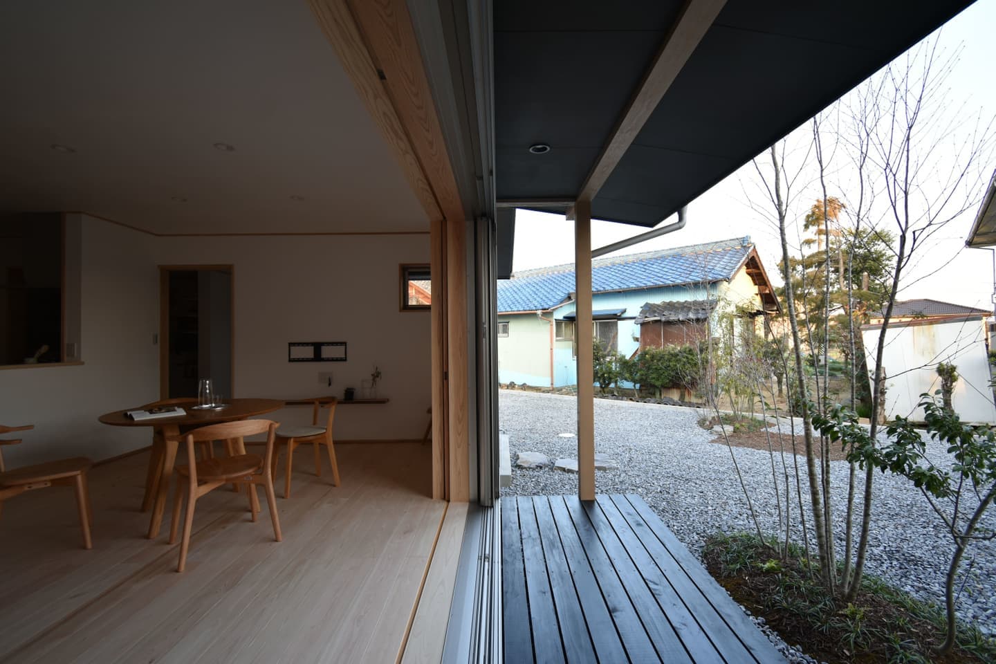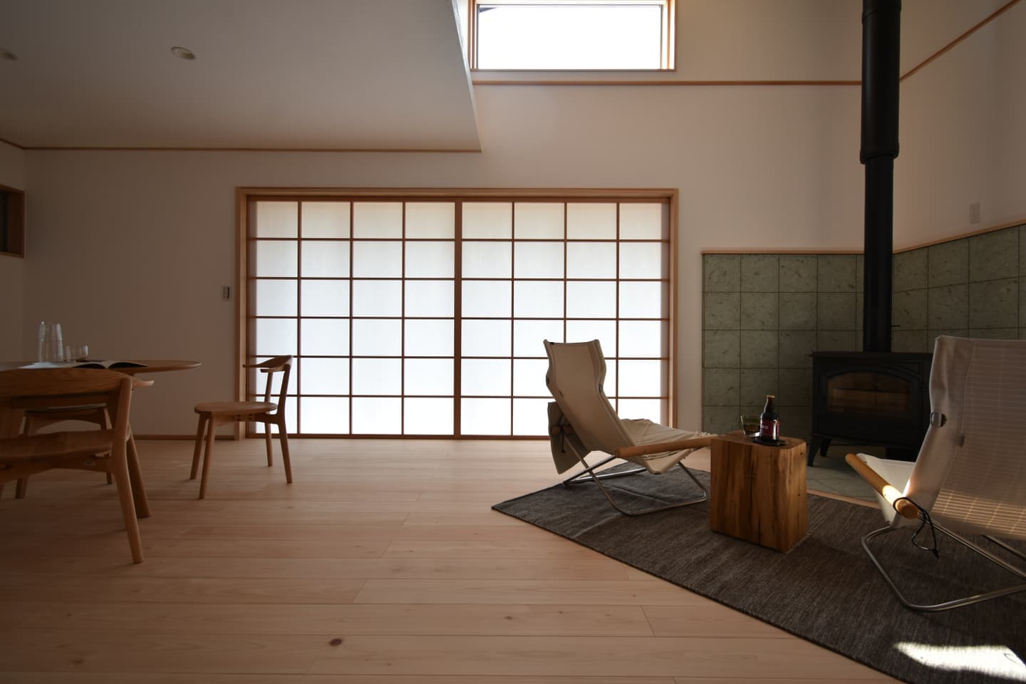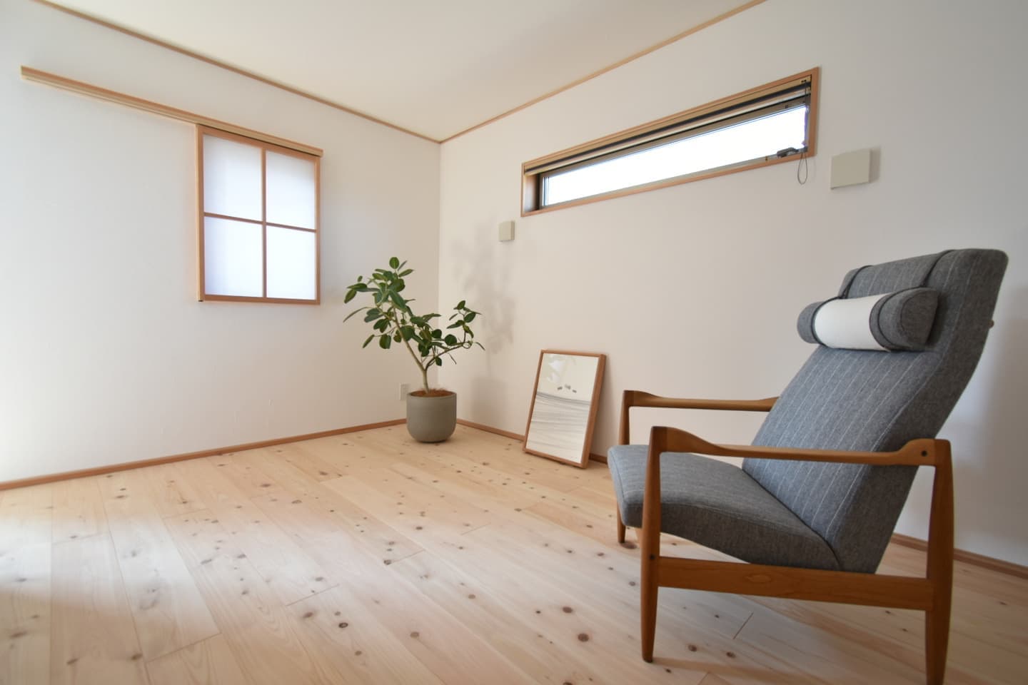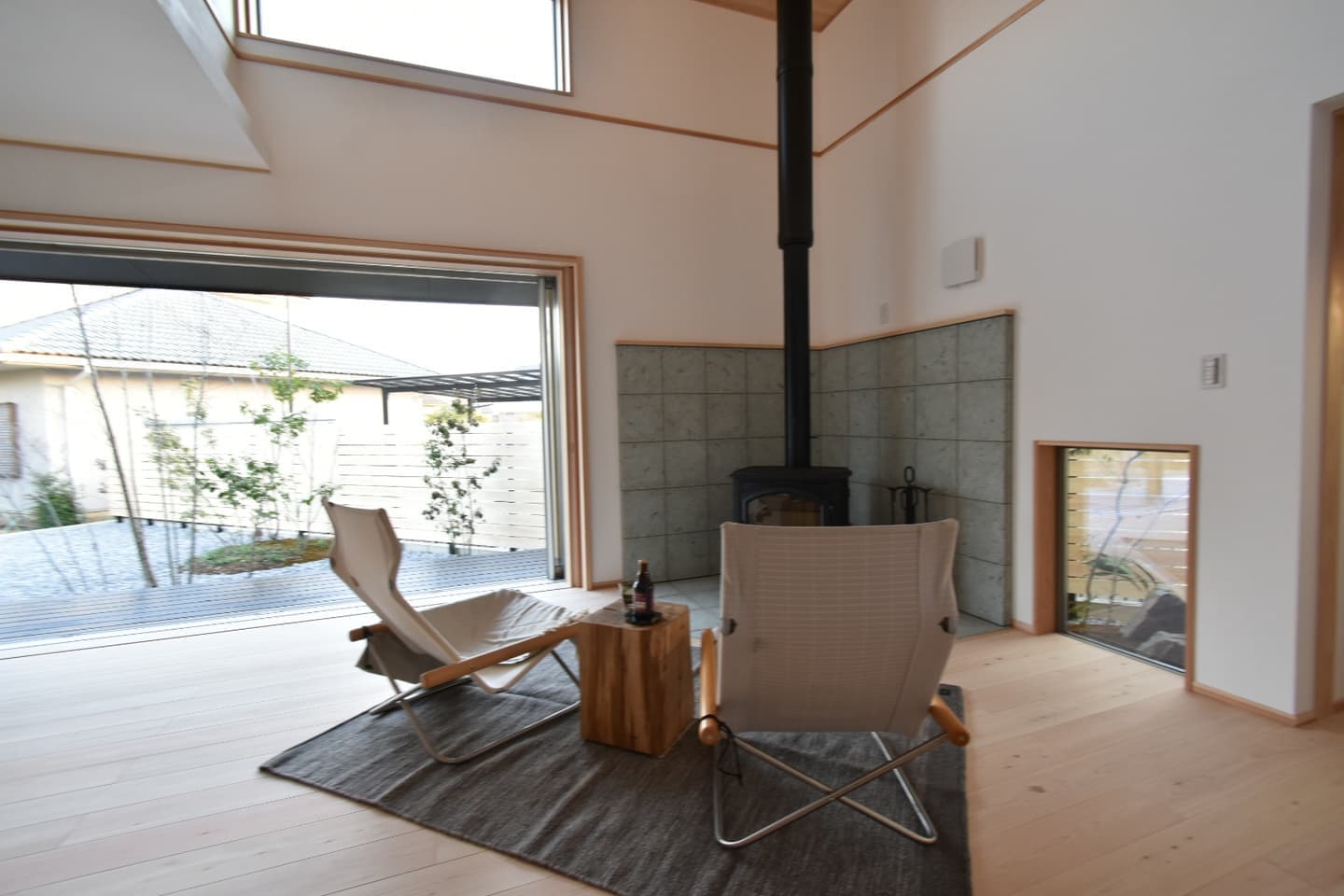 窓と庭のつながりを通して里山の自然を身近に感じられ、室内は木の香りと漆喰が心地よい清々しい空気感で満たされてます。