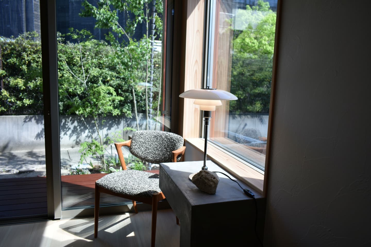 温もりをまとった大谷石の壁、フランク・ロイド・ライトの照明が放つ美しい光、木と石とモルテックスなど素材感を大切に丁寧に造り上げた造作家具。どれひとつとして「妥協で済ませる」という選択はありませんでした。