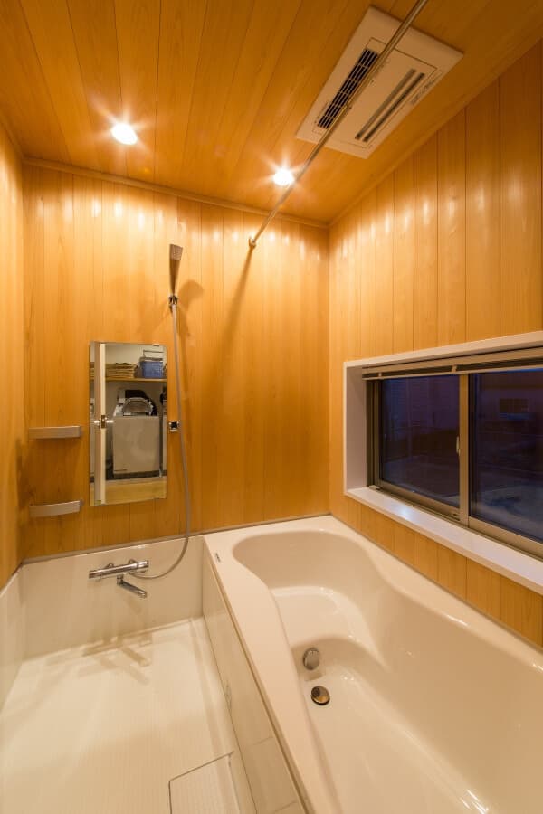 本物の木を使ったお風呂。ヒノキの香りが1日の疲れを癒してくれる。