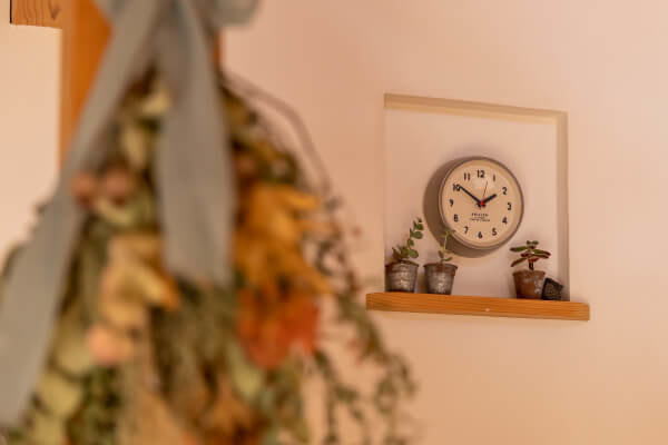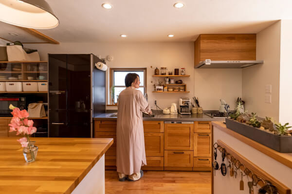 「玄関のつくりや主人の念願だった薪ストーブの置き場所なども結果的に絶妙なところに収まったのではないかと思っています。取っ手やタイルなどの私の細かなこだわりや、楽器演奏やDIY、アウトドア好きの主人の趣味を上手に取り入れてくださいました。」