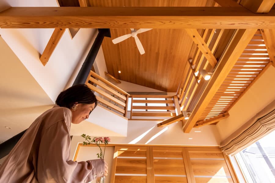 奥さまは、ときどき床に寝転んで、吹き抜けの天井を見上げ、自分たちの家を建て、今自分たちが暮らしていることをしみじみと思い、本当によい家を建てることができたと実感するのだそうです。