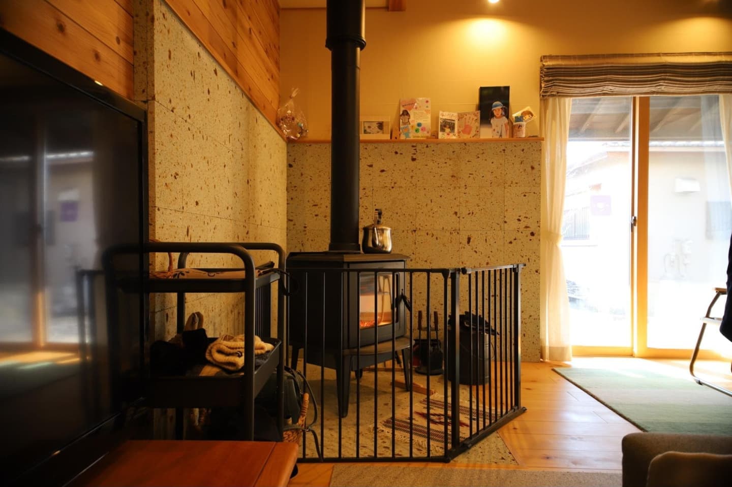 共働きで平日の日中は不在のため、冬の朝はファンヒーターで部屋を手早く温めて支度をして家を出発し、夕方に帰宅した後は、薪ストーブで暖をとる生活スタイル。最初は火を点けられなかった奥様もできるようになり、娘さんも薪を運んだりしてお手伝いをし、家族みんなでお世話。家族団欒の中心に薪ストーブがあります。