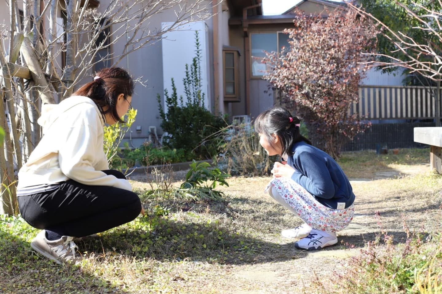 「バラみたいなお花が咲くんだよ」「へぇ〜楽しみ!」